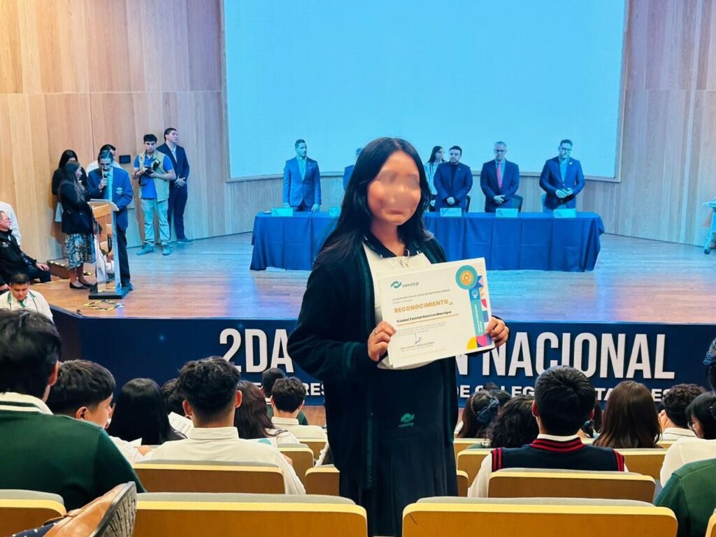 - Yuleime Ramírez, alumna del Plantel Tehuacán, recibió reconocimiento por su participación en el concurso “Mejor que chino”.